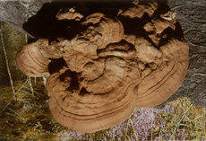 【性状介绍】子实体大型或特大型。无柄或几乎无柄。菌盖半圆形,扁半球形或扁平,基部常下延,宽5-35×10-50cm,厚1-12cm,表面灰色,渐变褐色,有同心环纹棱,有时有瘤,皮壳胶角质,边缘较薄。菌肉浅栗色,有时近皮壳处后变暗褐色,菌孔圆形,每毫米4-5个。